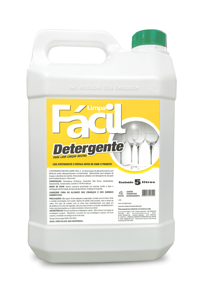 Det neutro Limpa Fácil é um detergente com alto poder desengordurante indicado para lavar louças e utensílios de cozinha. Ótimo custo enefício. GL 5 LITROS. 1 litro concentrado rende 5 litros.